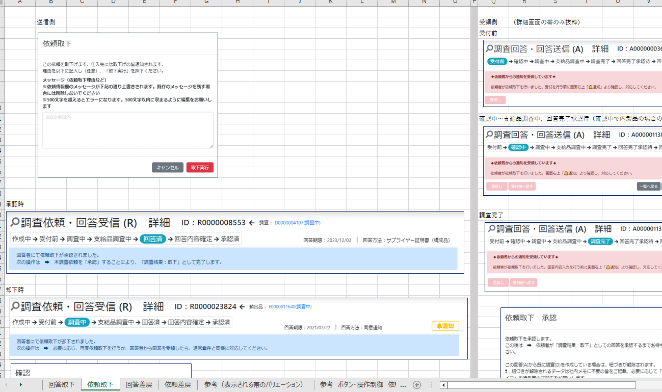 ●回答取下/依頼取下/回答差戻/依頼差戻の際のポップアップキャプチャ
